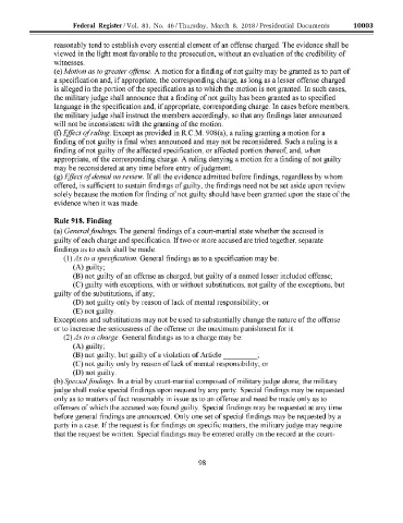 party in a case. If the request is for findings on specific matters, the military judge may require