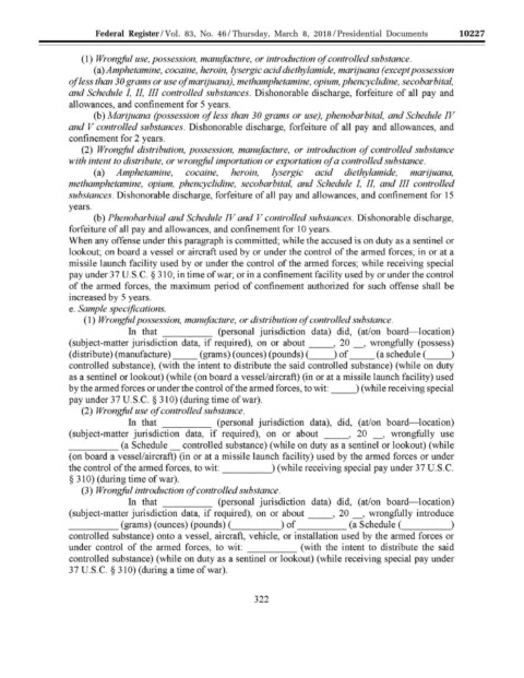 ____ (a Schedule_ controlled substance) (while on duty as a sentinel or lookout) (while