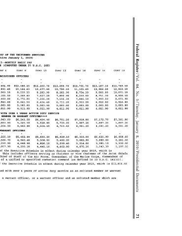 UNIPORMBD 20191 PAY BASIC 37 UNDER 8 OVer OFFICERS $12,088.20 10,164.60 8,239.20 7,268.40 6,772.80 6,241.50 5,083.80 4,011.90 YBARS WARRANT $6,241.50 5,245.50 4,442.40 OPPICBRS $5,452.80 4,940.40 4,648.80 4,290.30 Staff of Schedule years officer,