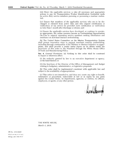amozie on DSK9F9SC42PROD with PRES DOC 2 VerDate Sep<11>2014 17:44 Mar 06, 2019 Jkt 247001 PO 00000 Frm 00004 Fmt 4705 Sfmt 4790 E:\FR\FM\07MRE0.SGM 07MRE0 Trump.EPS</GPH>