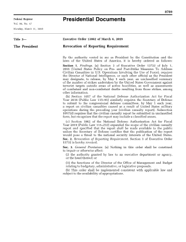 Civilian Casualties in U.S. Operations Involving the Use of Force), requires