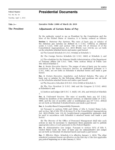 Section 1. Statutory Pay Systems. The rates of basic pay or salaries of