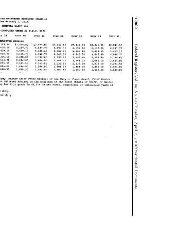 8--PAY Or THB (Bffective Part X--MONTHLY SBRVICB over 28 $7,119.30 6,075.60 5,429.10 4,046.70 3,396.60 2,664.00 2,233.50 1,884.00 1,680.90 the Army, of COrps, pay for basic on active duty. on active