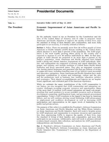 The President Economic Empowerment of Asian Americans and Pacific Is-