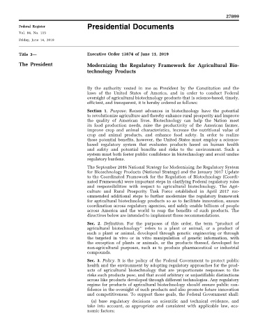 The President Modernizing the Regulatory Framework for Agricultural Bio-