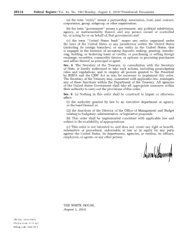 38114 Federal Register / Vol. 84, No. 150 / Monday, August 5, 2019 / Presidential Documents
