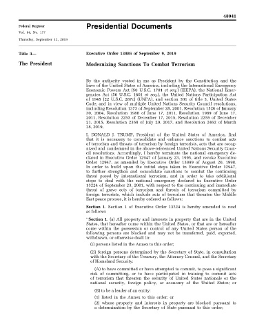 jbell on DSK3GLQ082PROD with PRESDOC VerDate Sep<11>2014 18:42 Sep 11, 2019 Jkt 247001 PO 00000 Frm 00001 Fmt 4705 Sfmt 4790 E:\FR\FM\12SEE0.SGM 12SEE0