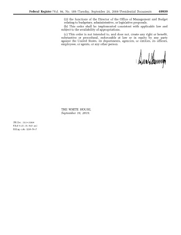 Federal Register / Vol. 84, No. 185 / Tuesday, September 24, 2019 / Presidential Documents 49939