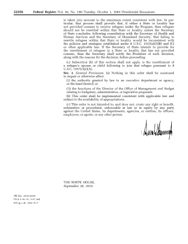 52356 Federal Register / Vol. 84, No. 190 / Tuesday, October 1, 2019 / Presidential Documents