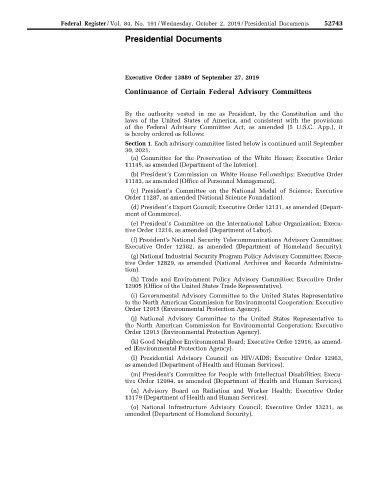 Federal Register / Vol. 84, No. 191 / Wednesday, October 2, 2019 / Presidential Documents 52743