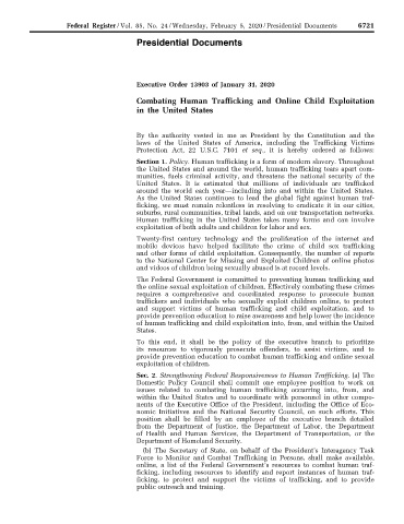 Federal Register / Vol. 85, No. 24 / Wednesday, February 5, 2020 / Presidential Documents 6721