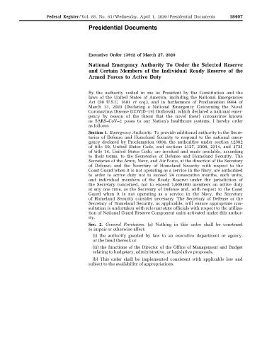 Federal Register / Vol. 85, No. 63 / Wednesday, April 1, 2020 / Presidential Documents 18407