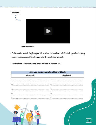 menggunakan energi listrik yang ada di rumah dan sekolah.