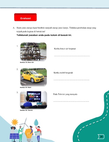A. Suatu jenis energi dapat berubah menjadi energi jenis lainya. Tuliskan perubahan enegi yang