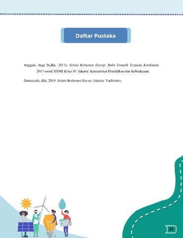 Daftar Pustaka Anggari, Angi St,dkk. 2017a. Selalu Berhemat Energi: Buku Tematik Terpadu Kurikulum 2013 untuk SD/MI Kelas IV. Jakarta: Kementrian Pendidikan dan Kebudayaan. Damarasih, dkk. 2019. Selalu Berhemat Energi. Jakarta: Yudhistira. 23