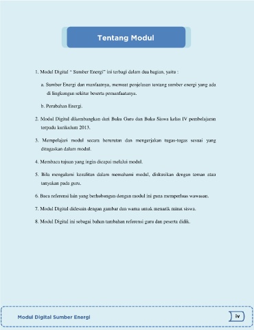 1. Modul Digital “ Sumber Energi” ini terbagi dalam dua bagian, yaitu :