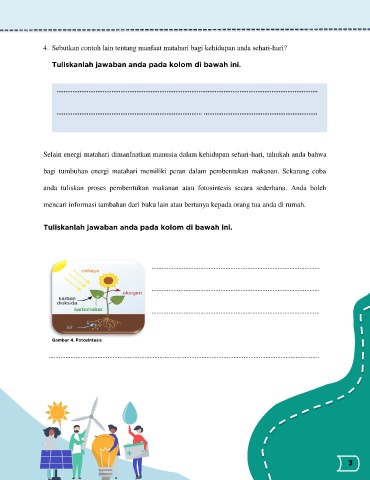 4. Sebutkan contoh lain tentang manfaat matahari bagi kehidupan anda sehari-hari?