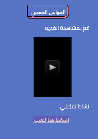 الحواس الخمس قم بمشاهدة الفديو نشاط تفاعلي اضغط هنا للعب