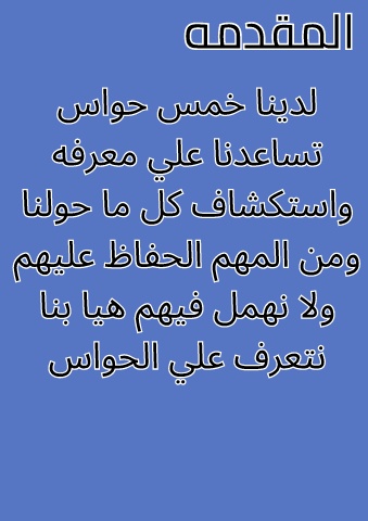 االلممققددممهه لدينا خمس حواس تساعدنا علي معرفه واستكشاف كل ما حولنا ومن المهم الحفاظ عليهم ولا نهمل فيهم هيا بنا نتعرف علي الحواس
