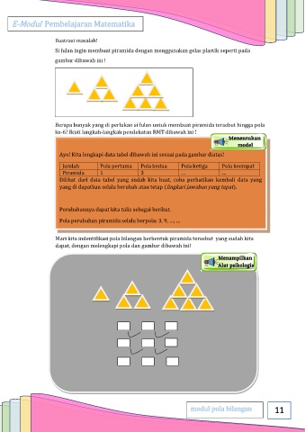 Mari kita indentifikasi pola bilangan berbentuk piramida tersebut yang sudah kita
