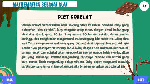 ideal dan stabil, yaitu 50 kg. Zaky makan 90 batang cokelat dalam jangka