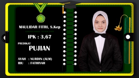 MAULIDAR FITRI, S.Kep LANCANG BARAT, 16 JUNI 1999 IPK : 3,67 PREDIKAT PUJIAN AYAH : NURDIN (ALM) IBU : FATHIYAH