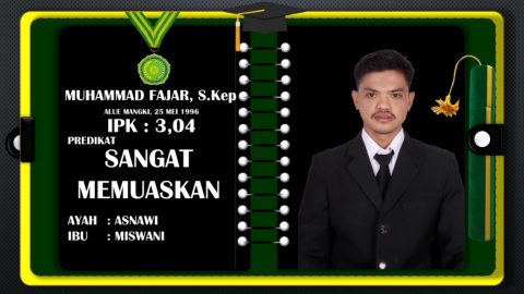 MUHAMMAD FAJAR, S.Kep ALUE MANGKI, 25 MEI 1996 IPK : 3,04 PREDIKAT SANGAT MEMUASKAN AYAH : ASNAWI IBU : MISWANI