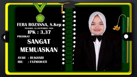 FERA ROZANNA, S.Kep PEUDADA, 22 SEPTEMBER 1998 IPK : 3,37 PREDIKAT SANGAT MEMUASKAN AYAH : BUKHARI IBU : FATMAWATI