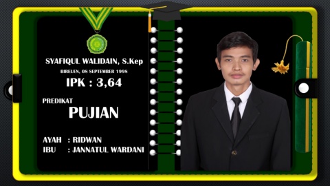 SYAFIQUL WALIDAIN, S.Kep BIREUEN, 08 SEPTEMBER 1998 IPK : 3,64 PREDIKAT PUJIAN AYAH : RIDWAN IBU : JANNATUL WARDANI