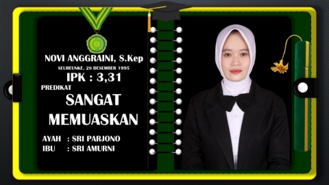 NOVI ANGGRAINI, S.Kep SEUREUNKE, 28 DESEMBER 1995 IPK : 3,31 PREDIKAT SANGAT MEMUASKAN AYAH : SRI PARJONO IBU : SRI AMURNI