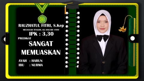 RAUZHATUL FITRI, S.Kep MEUNASAH TENGOH, 02 JANUARI 1999 IPK : 3,30 PREDIKAT SANGAT MEMUASKAN AYAH : HARUN IBU : NURMA