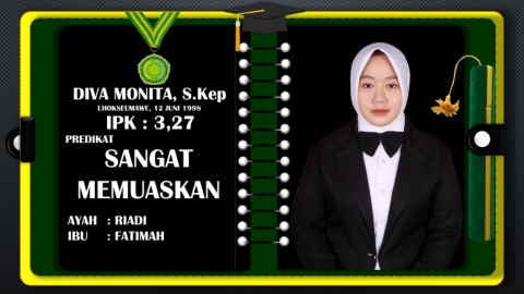DIVA MONITA, S.Kep LHOKSEUMAWE, 12 JUNI 1998 IPK : 3,27 PREDIKAT SANGAT MEMUASKAN AYAH : RIADI IBU : FATIMAH