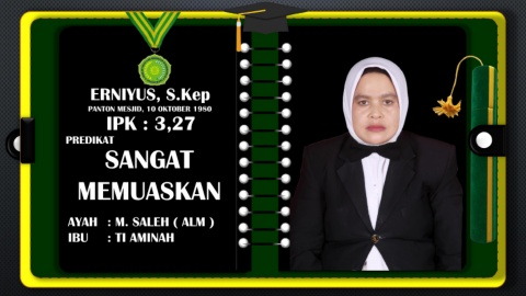 ERNIYUS, S.Kep PANTON MESJID, 10 OKTOBER 1980 IPK : 3,27 PREDIKAT SANGAT MEMUASKAN AYAH : M. SALEH ( ALM ) IBU : TI AMINAH