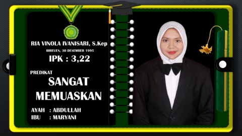 RIA VINOLA IVANISARI, S.Kep BIREUEN, 30 DESEMBER 1995 IPK : 3,22 PREDIKAT SANGAT MEMUASKAN AYAH : ABDULLAH IBU : MARYANI