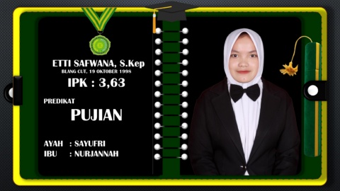ETTI SAFWANA, S.Kep BLANG CUT, 19 OKTOBER 1998 IPK : 3,63 PREDIKAT PUJIAN AYAH : SAYUFRI IBU : NURJANNAH