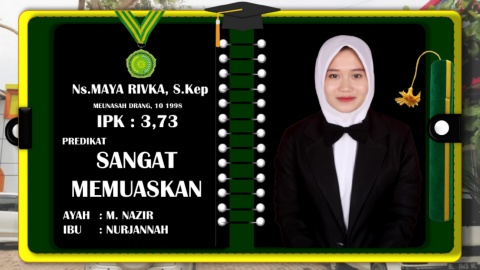Ns.MAYA RIVKA, S.Kep MEUNASAH DRANG, 10 1998 IPK : 3,73 PREDIKAT SANGAT MEMUASKAN AYAH : M. NAZIR IBU : NURJANNAH