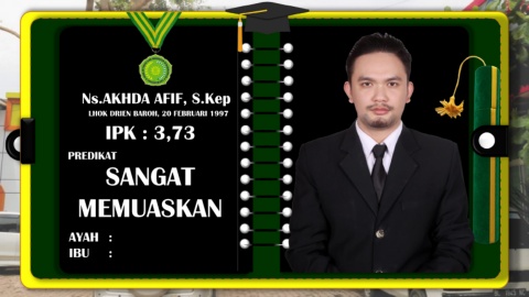 Ns.AKHDA AFIF, S.Kep LHOK DRIEN BAROH, 20 FEBRUARI 1997 IPK : 3,73 PREDIKAT SANGAT MEMUASKAN AYAH : IBU :