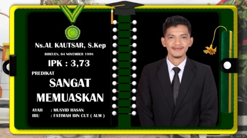 Ns.AL KAUTSAR, S.Kep BIREUEN, 04 NOVEMBER 1998 IPK : 3,73 PREDIKAT SANGAT MEMUASKAN AYAH : MUSYID HASAN IBU : FATIMAH BIN CUT ( ALM )