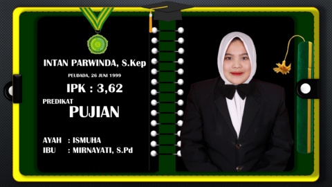 INTAN PARWINDA, S.Kep PEUDADA, 26 JUNI 1999 IPK : 3,62 PREDIKAT PUJIAN AYAH : ISMUHA IBU : MIRNAYATI, S.Pd