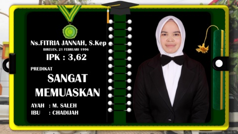 Ns.FITRIA JANNAH, S.Kep BIREUEN, 21 FEBRUARI 1996 IPK : 3,62 PREDIKAT SANGAT MEMUASKAN AYAH : M. SALEH IBU : CHADIJAH
