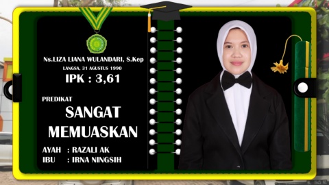 Ns.LIZA LIANA WULANDARI, S.Kep LANGSA, 31 AGUSTUS 1990 IPK : 3,61 PREDIKAT SANGAT MEMUASKAN AYAH : RAZALI AK IBU : IRNA NINGSIH