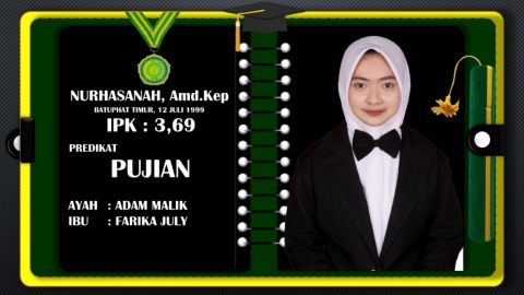 NURHASANAH, Amd.Kep BATUPHAT TIMUR, 12 JULI 1999 IPK : 3,69 PREDIKAT PUJIAN AYAH : ADAM MALIK IBU : FARIKA JULY