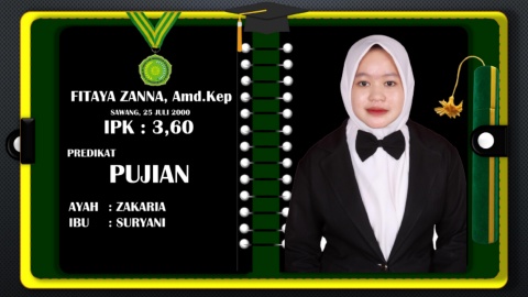 FITAYA ZANNA, Amd.Kep SAWANG, 25 JULI 2000 IPK : 3,60 PREDIKAT PUJIAN AYAH : ZAKARIA IBU : SURYANI