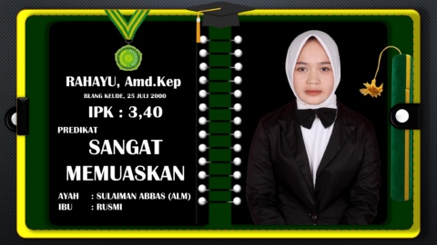 RAHAYU, Amd.Kep BLANG KEUDE, 25 JULI 2000 IPK : 3,40 PREDIKAT SANGAT MEMUASKAN AYAH : SULAIMAN ABBAS (ALM) IBU : RUSMI