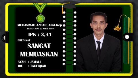 MUHAMMAD AZHAR, Amd.Kep BLANG CRUM, 22 APRIL 1999 IPK : 3,31 PREDIKAT SANGAT MEMUASKAN AYAH : JAMALI IBU : TAUFIQIAH