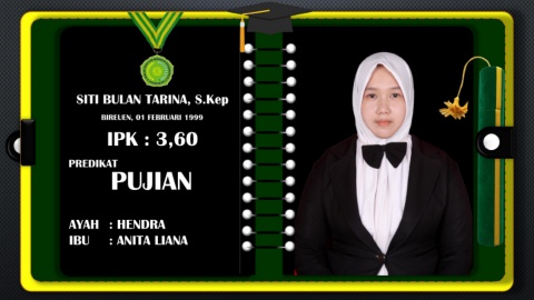 SITI BULAN TARINA, S.Kep BIREUEN, 01 FEBRUARI 1999 IPK : 3,60 PREDIKAT PUJIAN AYAH : HENDRA IBU : ANITA LIANA