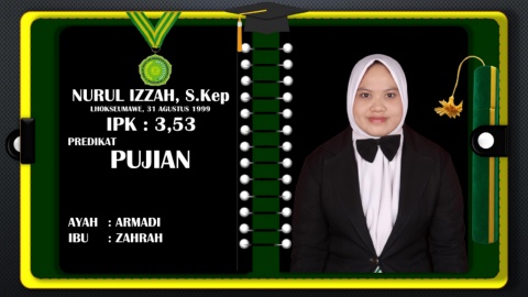 NURUL IZZAH, S.Kep LHOKSEUMAWE, 31 AGUSTUS 1999 IPK : 3,53 PREDIKAT PUJIAN AYAH : ARMADI IBU : ZAHRAH
