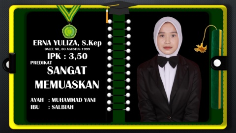 ERNA YULIZA, S.Kep BALEE ME, 03 AGUSTUS 1999 IPK : 3,50 PREDIKAT SANGAT MEMUASKAN AYAH : MUHAMMAD YANI IBU : SALBIAH