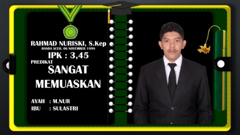 RAHMAD NURISKI, S.Kep BANDA ACEH, 06 NOVEMBER 1998 IPK : 3,45 PREDIKAT SANGAT MEMUASKAN AYAH : M.NUR IBU : SULASTRI