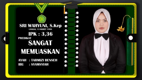 SRI WAHYUNI, S.Kep LANGSA, 13 MARET 1998 IPK : 3,36 PREDIKAT SANGAT MEMUASKAN AYAH : TARMIZI BENSEH IBU : SYAMSYIAH